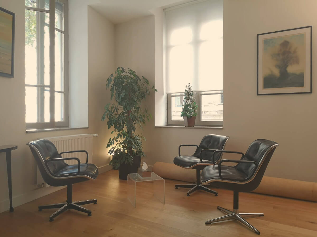 I have a waiting room with a comfortable couch and there is a cafe right outside on the square.